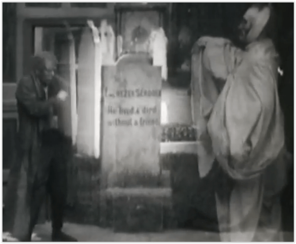 “Scrooge”, rereleased later as “Old Scrooge” for no apparent reason, appeared in 1913 and was the longest (known) version of the story up to that time, clocking in at some forty minutes. It opens with a little pseudo-documentary beginning with shots of Charles Dickens’s birthplace (with people pointing at it in part so we know this is not just a stil picture) which relates the plight of the Dickenses to that of the Cratchits. We then see Charles Dickens pacing a little in a book-lined study before sitting down to write “A Christmas Carol”. This Dickens is the bearded version, though I believe that in 1843, the real Charles hadn’t grown the beard yet. However….