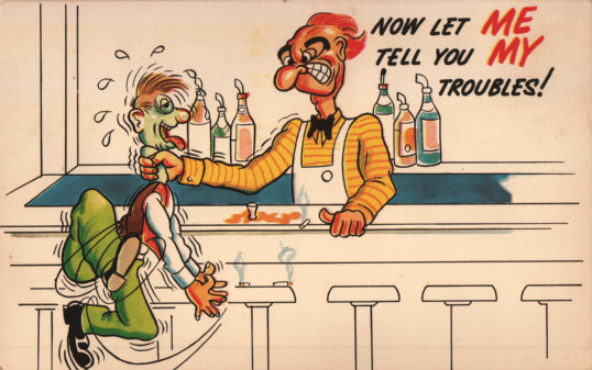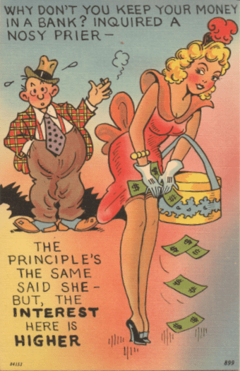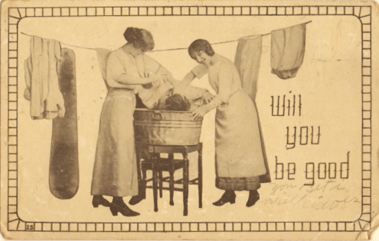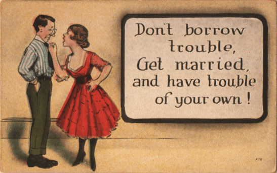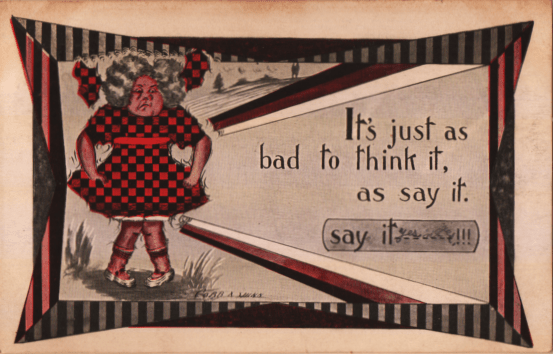 The time approaches once again for making New Year’s Resolutions, that combination of confessional and strategy which will make the impending 365 days a successful quest for happiness and joy (at LEAST until January 3.) As usual, your Uncle Blogsy, being so full of wisdom that he finds it hard to lift his head from the pillow each day, is making available some suggestions for those less fortunate. And, as always, the postcard artists of the past are lining up to assist in this noble endeavor.