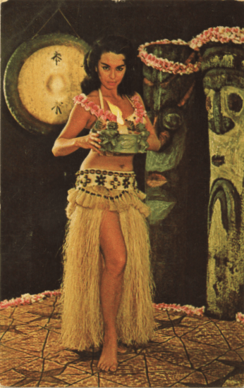 If you’ve been here before, you know that one of our chief activities is looking at old postcards to see what we can learn from them (and to see whether I can sell them, but that’s a different issue.) From time to time I run across a card with a joke that has so completely lost its point with the passage of time that no amount of Interwebs searching can bring that punchline back. We’re not going to discuss that sort of thing today. These are some cards that have left me with minor puzzles which do not detract from the card’s original appeal. Here, for example, we see at waitress at the Molokai Bar in the Mai-Kai, a Tiki restaurant which still exists in Fort Lauderdale. What she is holding in her hands is the Mystery Bowl, a beverage served only to the very adventurous…back when this card was issued. The Mai-Kai, perhaps motivated by the fact that the law is not fond of mystery ingredients, no longer serves the Mystery Bowl (or at least does not mention in on their online menu.) So what was in the Mystery Bowl? It must have been an expensive and potent potable, since the purchaser not only got the bowl but that string of orchids around her neck. (I know; I was trying to resist the pull of the traditional lei jokes.)