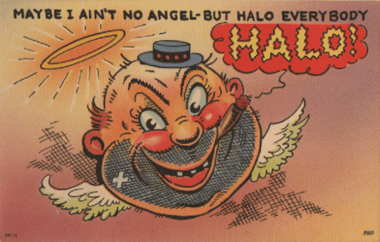This card, on the other hand, seems to have come out at about the same time that Halo Shampoo was promoting itself with one of advertising’s most nearly immortal jingles. The mystery here is “Did nobody get sued over this?”
