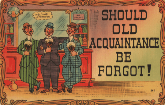 Earlier in the evening, social drinkers can reflect that SOME of their pals aren’t dead yet. Hail Hail the Gang’s All Here is or is not a song dating to 1917. This sheet music, attributed to the same lyricist who gave us “It’s Three O’clock in the Morning”, seems to be little more than a recognition that people had been singing these lyrics to a tune from Pirates of Penzance (“Come, friends, who plough the sea”) since at least the 1890s, when observers noted its popularity among amateur saloon singers.