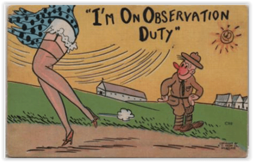 The gag continued in popularity well through World War II (when ogling women was another sign that the American serviceman was a red-blooded American boy).