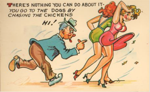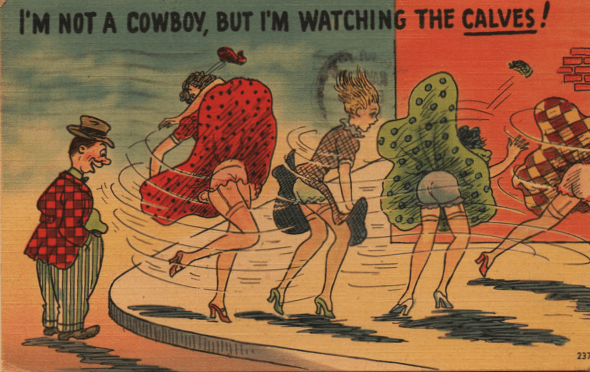 I was going to write a quick and breezy column about the wonderful world of wardrobe malfunctions in bygone postcards. Dropped pants, bathing suits torn in quite the wrong places…it was going to be a high class, high tone study of the humor of previous generations.