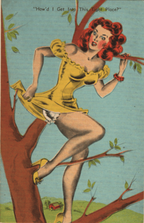 You will notice that in most of these situations, the artist has NOT included an onlooker (unlike the Frahm “Lady in Distress” pinups, which always included spectators to make the situation even worse.) After all, that’s what WE were there for.