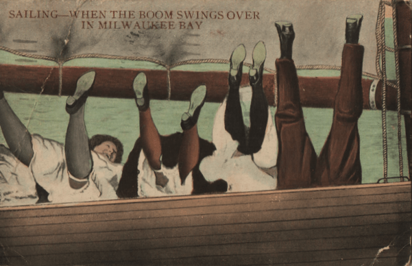 Except on postcards, where its life was extended another generation simply because no artist wants to give up a good gag as long as there might be SOMEBODY who still understands. (We will devote another column someday to those postcards for people who were having a “Slapping Good Time” or even a “Whacking Good Time”.)