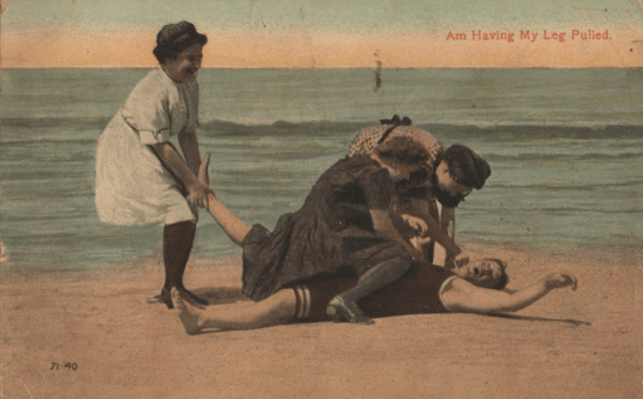 As miserable as that situation is, however, the postcard cartoonist could think of one worse fate. (Unless this is just wishful thinking. I’ve seen a few documents on what postcard artists got paid. I don’t suppose THOSE pockets showed much at night beyond pennies and scraps of paper with punchlines scribbled on them.)