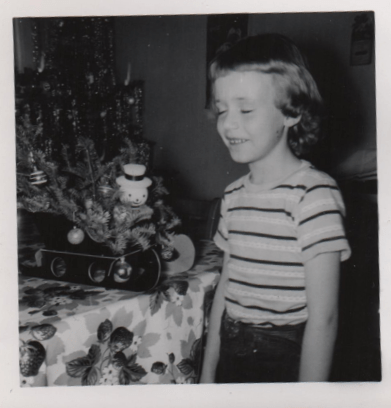 Our job involved colored sugar, red cinnamon drops, and metallic sugar balls impossible to eat and eventually, I believe, declared toxic by the FDA. We naturally went all out for those two last ingredients, which could be jammed down into the dough and which made the cookies very hard to eat afterward. (But perfect for reindeer noses, snowman buttons, and bell clappers.) We DID eat these, crunching against the green and red sugar granules and chewing the cinnamon blobs which invariably went all the way through and melted to the cookie sheet, but we weren’t fanatics about it. Decorating these cookies was a lot more fun than eating them, and I believe this cookie was the first holiday tradition to be abandoned. (There was a LOT of sugar for decorating left over, which, since we never used it for anything else, remained tucked up into the top of the spice cabinet until the Family Home was broken up and one sentimental fool took them home to sit in my…in that person’s cupboard.)