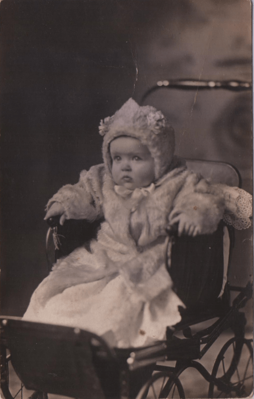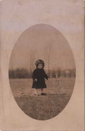 See, showing off that new winter wardrobe is a frequent motivation behind winter rppcs, and children are frequently the sufferers from this. A child generally needs a new winter coat every year, especially in the early years, when growth is constant and loving aunts and grandmothers with knitting needles can turn out a wonderful ensemble. This infant looks willing, but confused: why did he have to put on all this stuff to go sit indoors in front of a man who keeps talking about watching birdies?