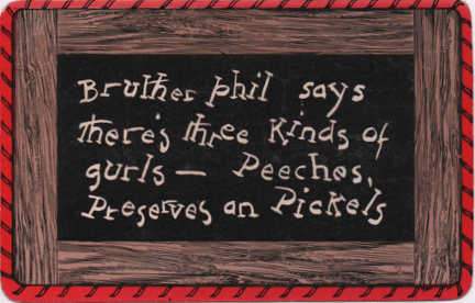 So Jim and Phil and Sis and the hired help are not all part of one big dysfunctional family, but apparently represent various rural (the slate disappeared in the cities first; those little one room schoolhouses beloved of American folklore took longer to convert. Have I told you what my grandfather had to say about HIS one-room schoolhouse? Nother blog.)