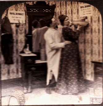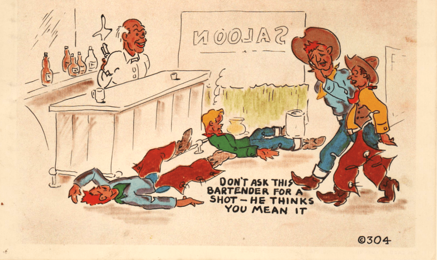 Or the showgirl. What we can pick out of these little tableaux depends more on our own angle when we seek historical data. We must remember is that the artist was not striving to preserve an insightful or even accurate picture of conditions at the time. In looking for a gag that would help them pay the rent, they did hold up a mirror to the thoughts in their heads, which reflected times they lived in. But, like a mirror, what they show should not be taken as a perfect picture (the best mirrors still get everything backward.)
