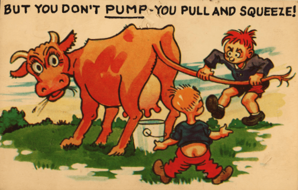 Though in fact, the farmer’s daughter and the pretty milkmaid were staples of literature, postcards, and jokes long before the war.