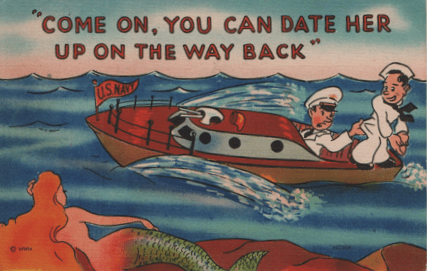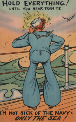 So a life on the sea was considered pretty fair game. Some day, when I can do it without getting queasy, I will cover the whole subject of seasickness in postcards.