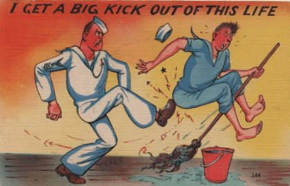 And if army life was associated by comedians and cartoonists with peeling potatoes, the Navy automatically made them think of swabbing decks.