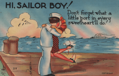 HOWEVER, there was one chore sailors were connected with in the popular view even more than scrubbing. The soldier on leave had a reputation with the ladies, but for a sailor this was considered a primary function. People felt they went to sea just for a rest between romances.