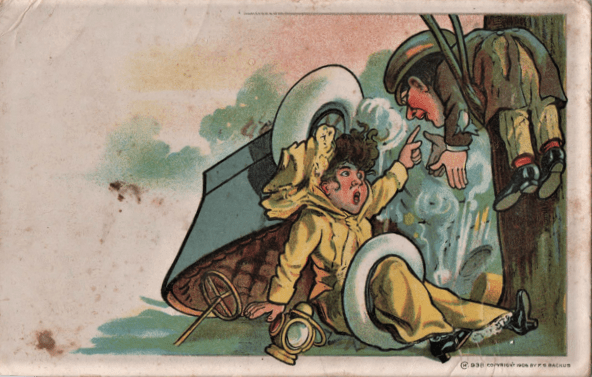 “Good grief, that’s my wife!” he exclaimed. “Quick! ( )”