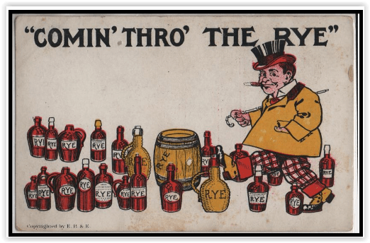 Of course, a postcard cartoonist often saluted the OTHER things Scotland was known for. (It’s a sociological principle: the longer the winter the harder the liquor.)