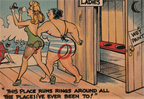 And though I could not find a postcard which dealt with this problem in a modern public restroom, we all know that the problem continues into the twenty-first century (though a great deal of graffiti has now been shifted to twitter.)