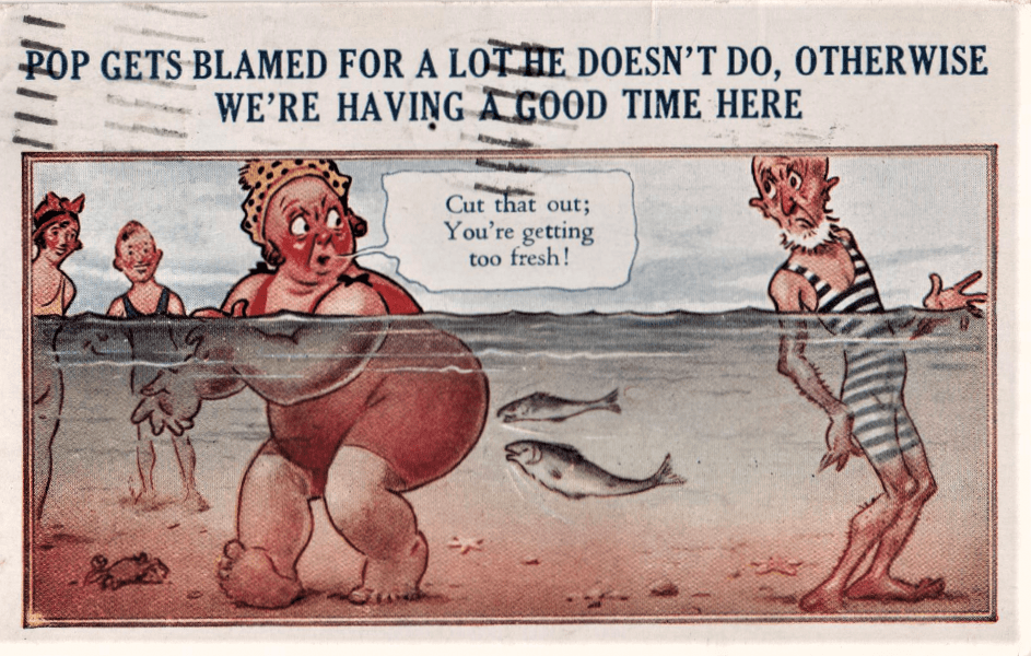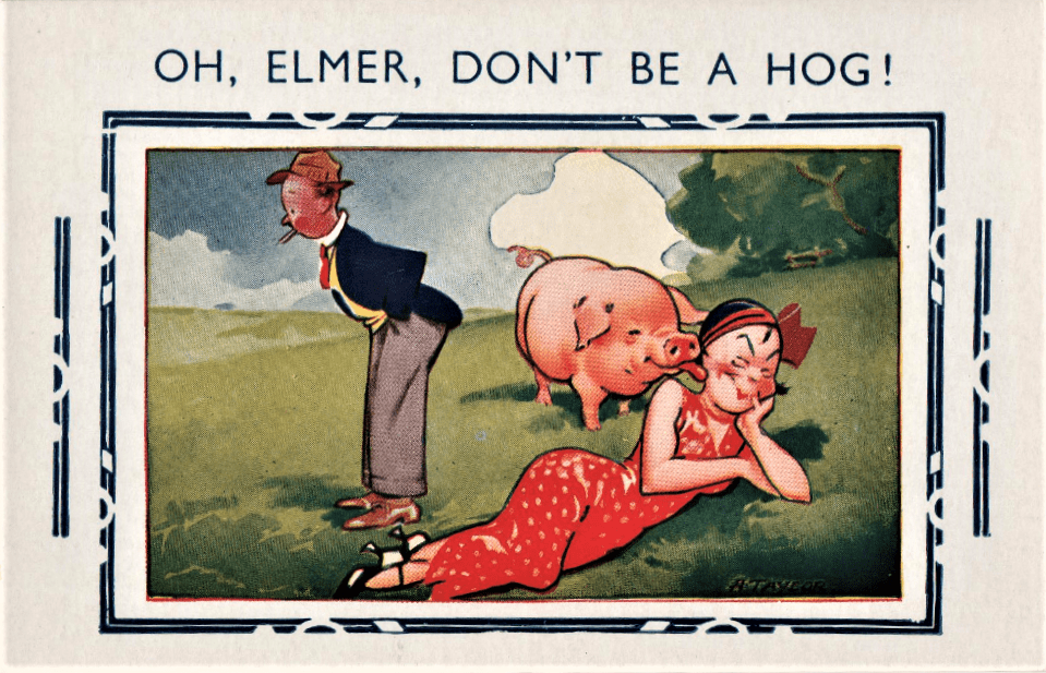 I hope we have established that our ancestors who sent (or at least bought) postcards were not babes in the woods. We have discussed what they thought about having a bear behind, and looked over those people admitted they had tired donkeys, or suggested you spank their donkeys. We have looked at a few (by no means all) of their jokes concerning laxatives, and how they took urination in stride as a basic, if occasionally awkward, bodily process.
