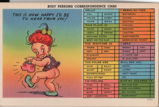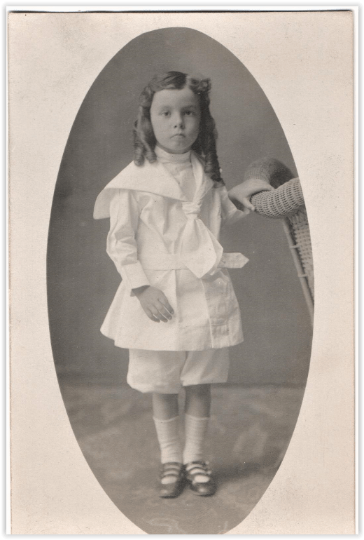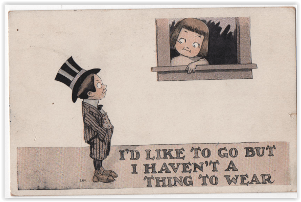 Whatever the intent, or the effect on the intended audience, we, decades later, see a family photo that somehow escaped the album by being turned into a postcard. The moment is preserved for future generations, and perhaps forever, even if the subject of the photo, like this little boy lovingly dressed by his mother, may have regretted it later on.