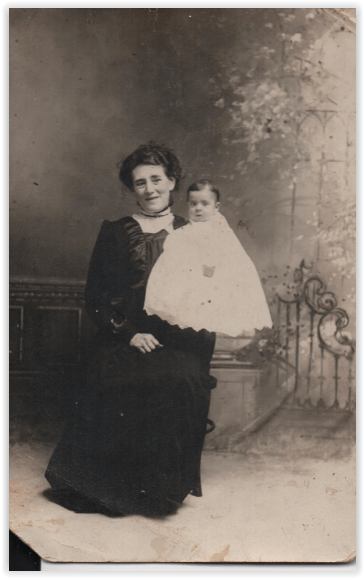 And is grandma holding up her granddaughter? Or is this an early ventrilogquist with her dummy?