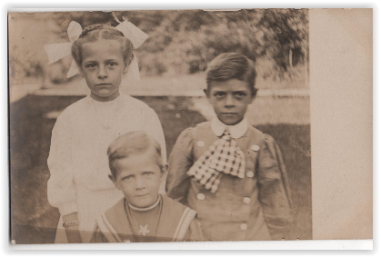 Of course, some of the RPPCs show more eternal photos, where we know what’s happening just by the poses and garments, even if we don’t know the names. You will find RPPCs made up after First Communions, commencement cdeeremonies, and weddings (handy for those thank you notes?)
