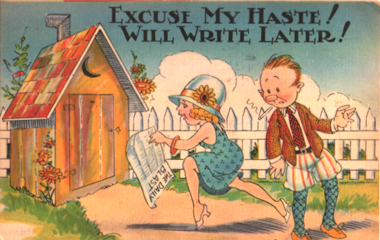 I hope this helps. Now that we have realized that our problems can never overcome us if we just show the wit and wiliness of an average sportsman, we can move on to my next problem. What life lessons can I teach you from all these old postcards with chamber pot jokes?